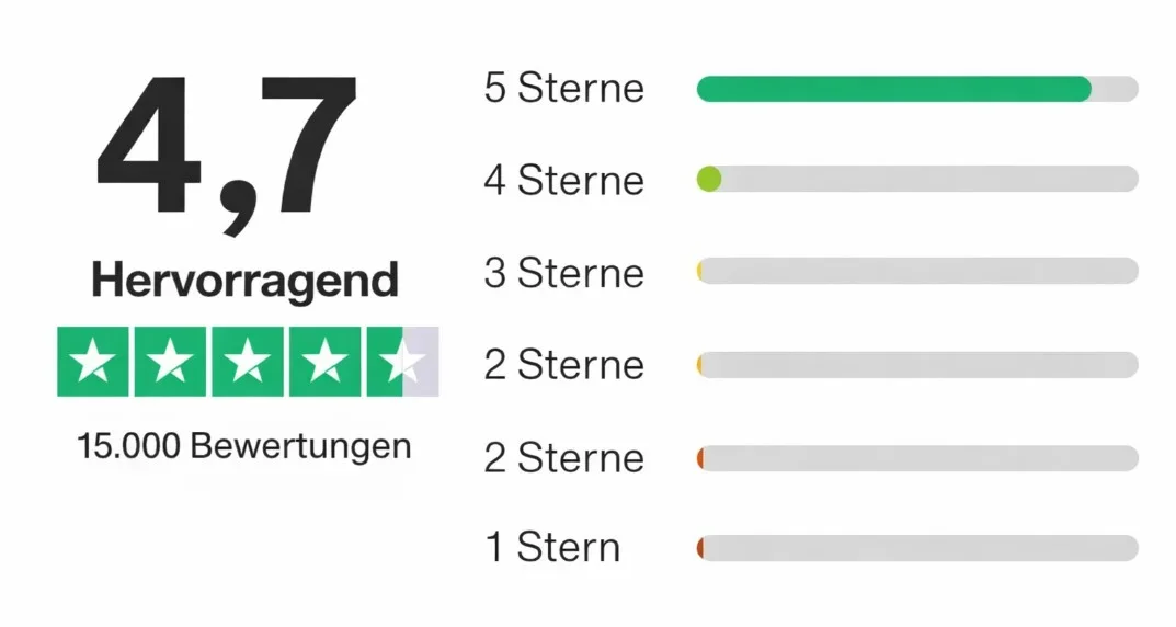 Mit 4,7/5 bewertet von über 15.000 zufriedenen Kunden.